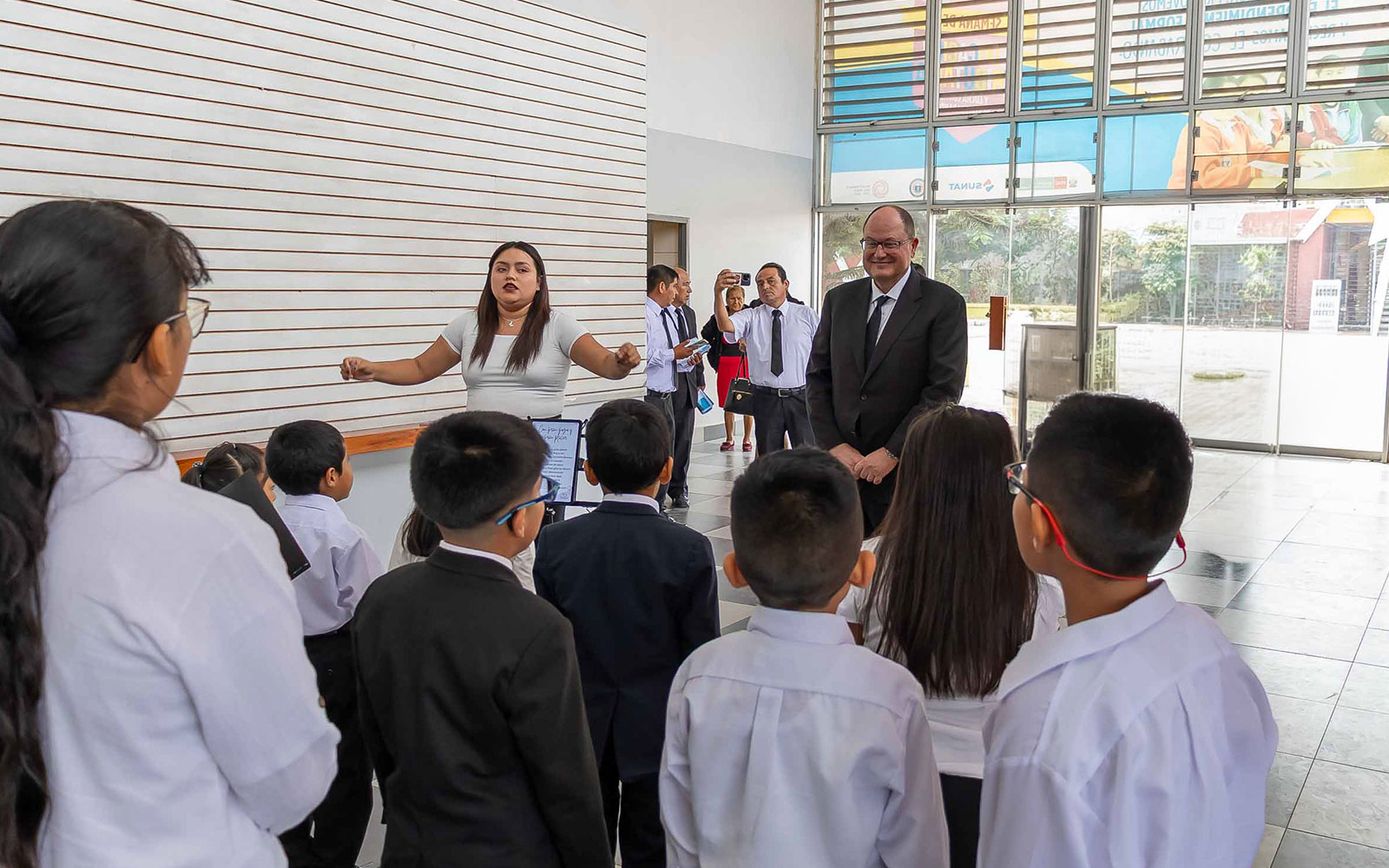 A su llegada, fue recibido con mucha alegría por el coro de niños, quienes con entusiasmo le dieron la bienvenida en el ingreso, creando un ambiente propicio para el inicio del servicio divino.